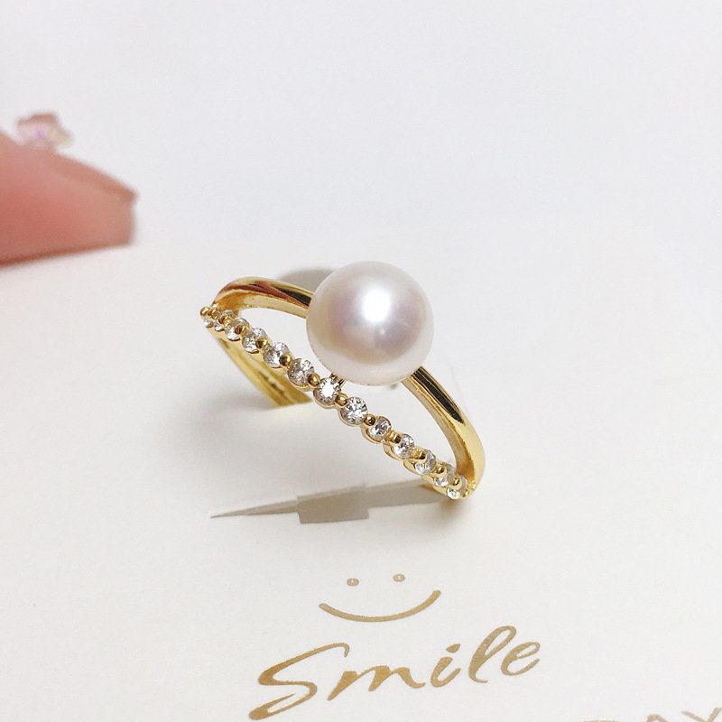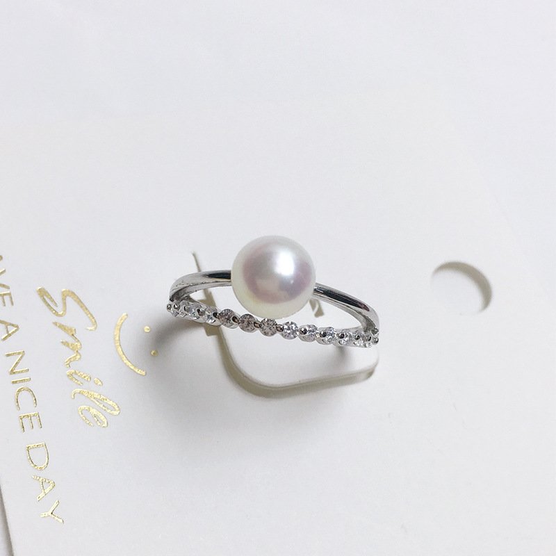 925 Silver Pearl Ring Single-Row Zirconia Ring For Women