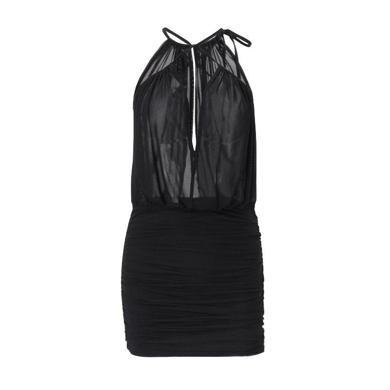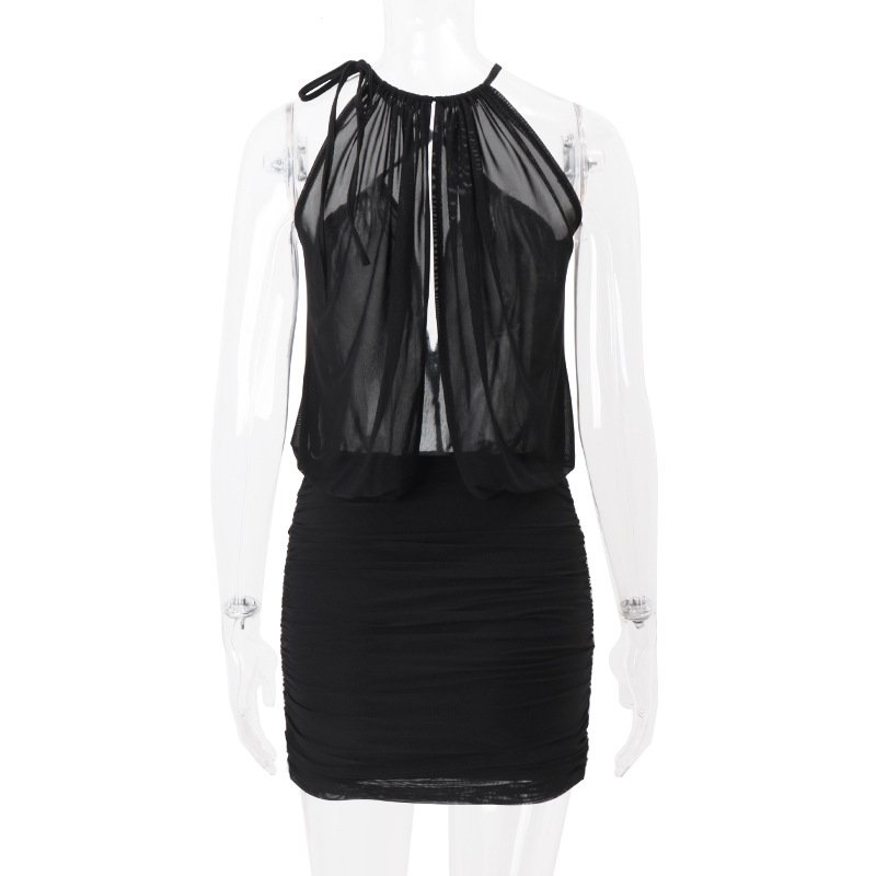 This dress set features a crisscross halter design. The pleated elements on the top add a sense of layering and elegance, and the off – shoulder and backless design reveals a sexy touch. The bodycon mini skirt at the bottom modifies the figure through pleated craftsmanship, highlighting the waist – hip curve. The overall style is full of pure and sexy charm. The fabric is skin – friendly and comfortable. It is a fashionable choice for dating and going out to create an eye – catching look, easily showing the dual charm of femininity and sexiness of women.