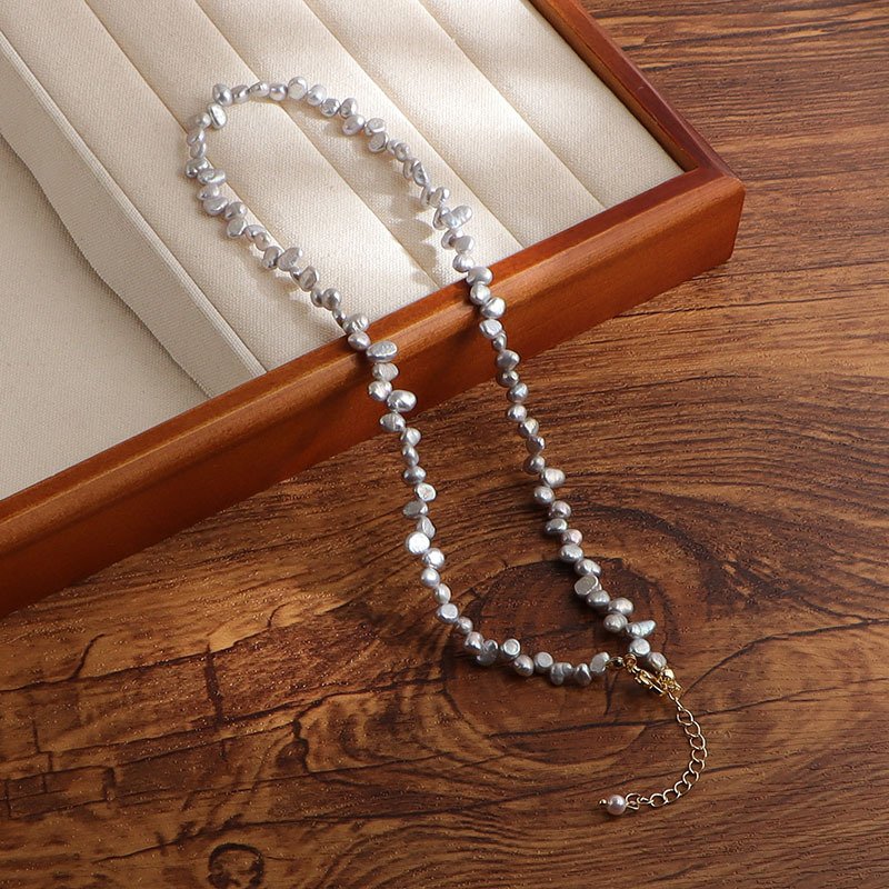 • Natural Pearl Necklace, Unique Texture for Gentle Warmth