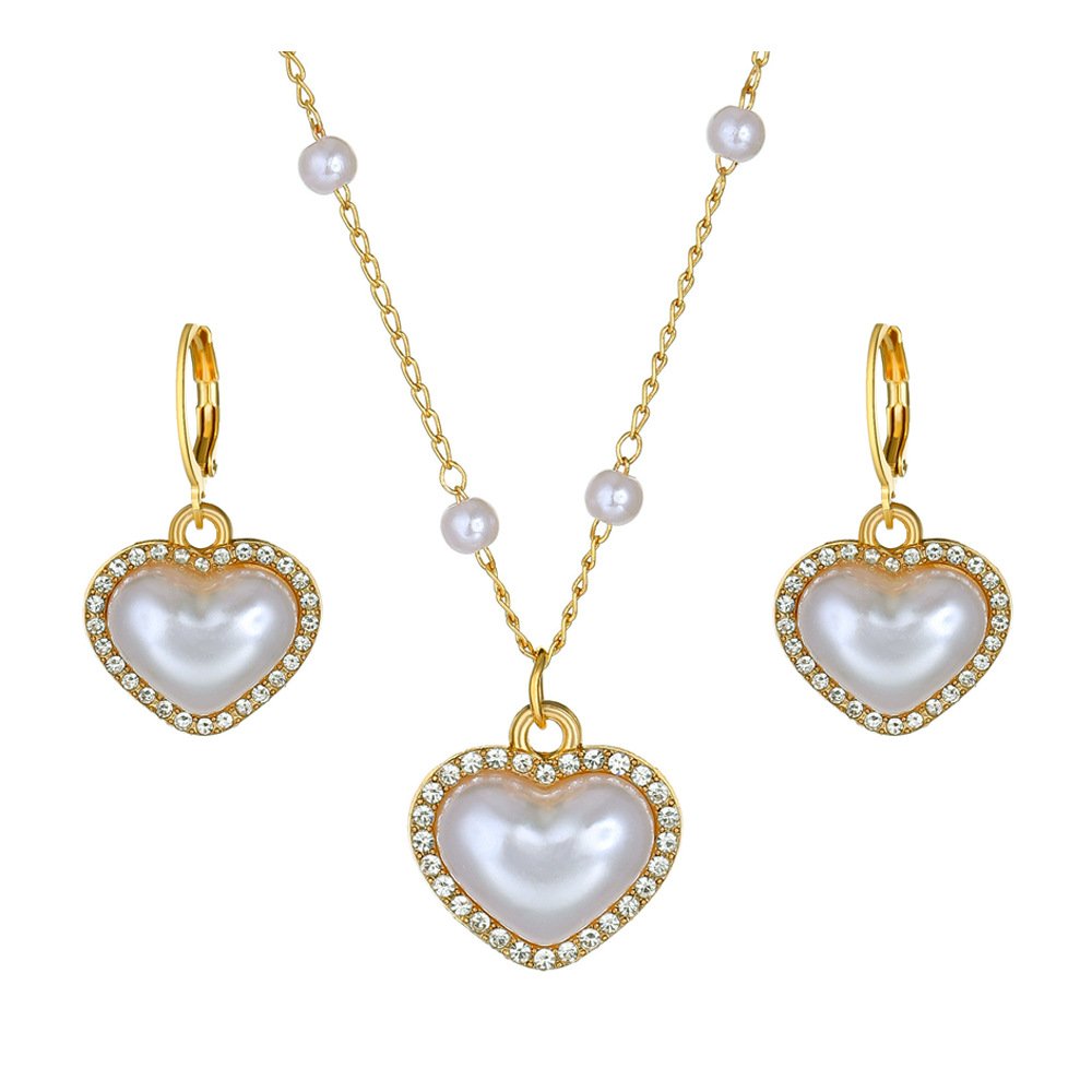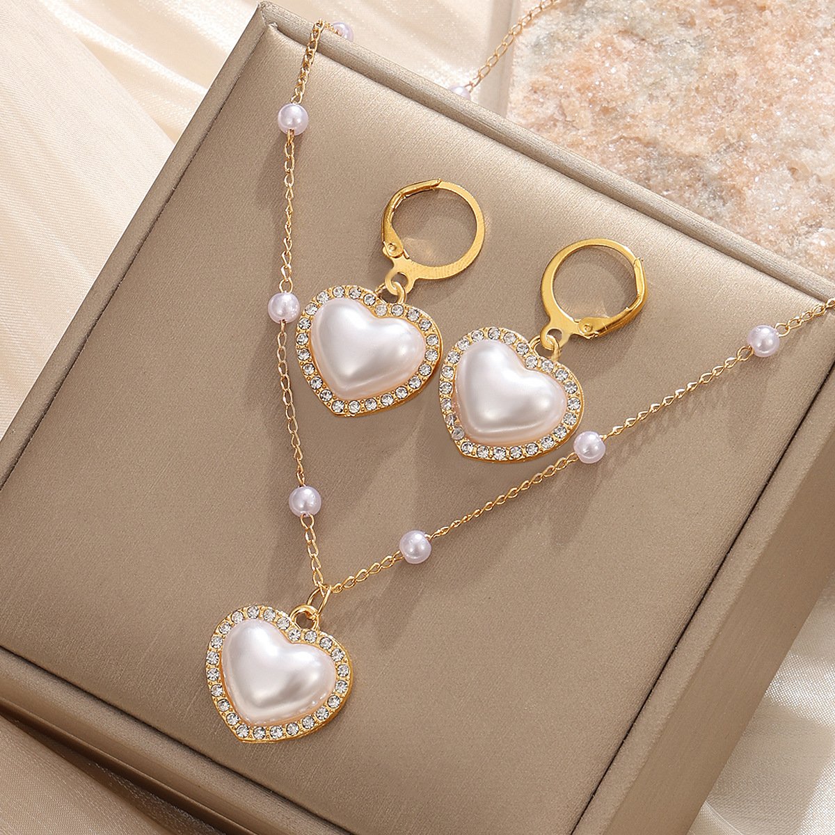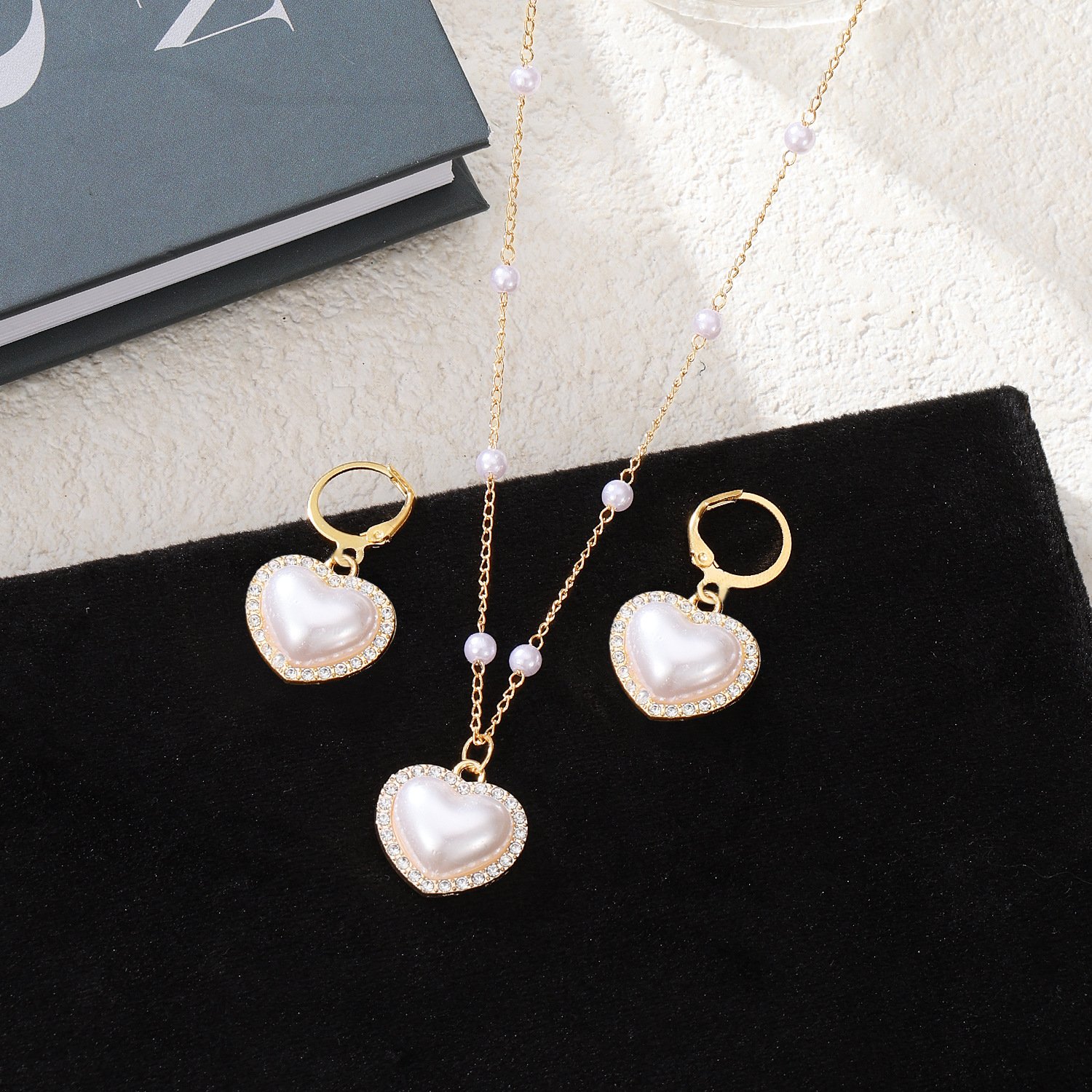 Elevate your style with this charming heart – shaped pearl jewelry set! It includes a delicate necklace and a pair of hoop earrings, both featuring lovely heart – shaped pearls surrounded by sparkling crystals. The necklace has a dainty gold chain adorned with small pearls, adding an extra touch of elegance. Perfect for adding a romantic and glamorous vibe to any outfit, whether you’re going to a party or just enjoying daily life. Designed to suit the fashion preferences of the European, American, and Australian markets, this set is a must – have for jewelry lovers.