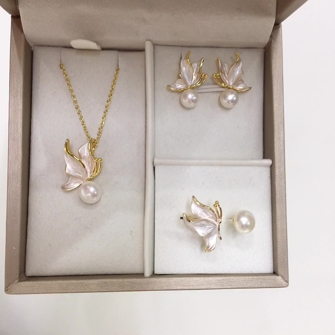 Pearl Set Women’s Matte Butterfly Pearl Earrings Resistant Jewelry