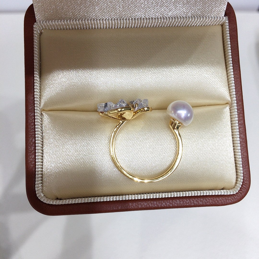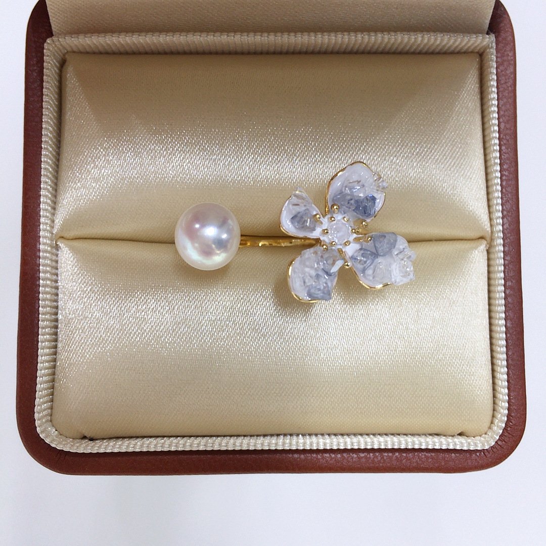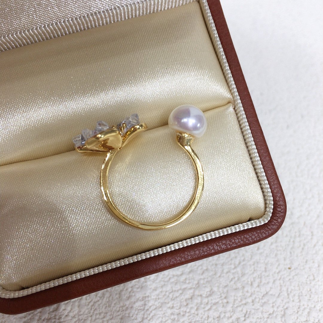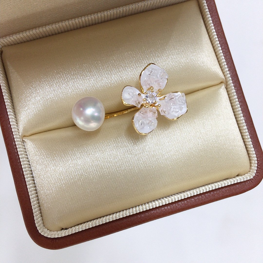 Elevate your ensemble with our Flower Freshwater Pearl Ring —a harmonious fusion of natural pearl luster and crystalline floral artistry. Featuring a luminous round pearl paired with a delicately crafted flower design, adorned with shimmering crystal-like elements and set in a gold-toned frame, this Freshwater Pearl Ring embodies refined elegance.