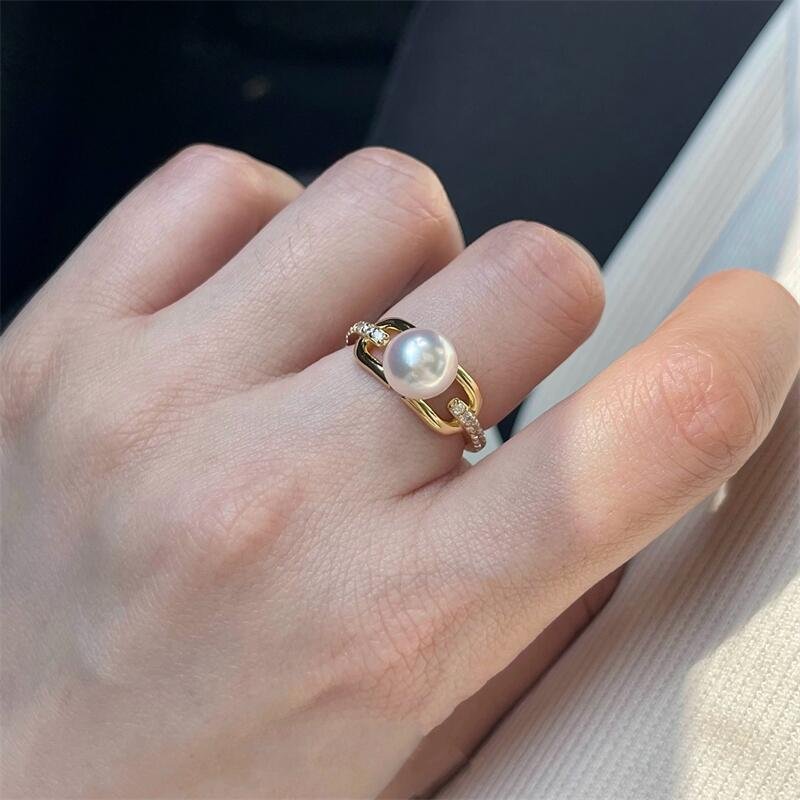 The edgy interlocking chain structure adds a contemporary twist, making it a standout piece that balances sophistication and trendiness.