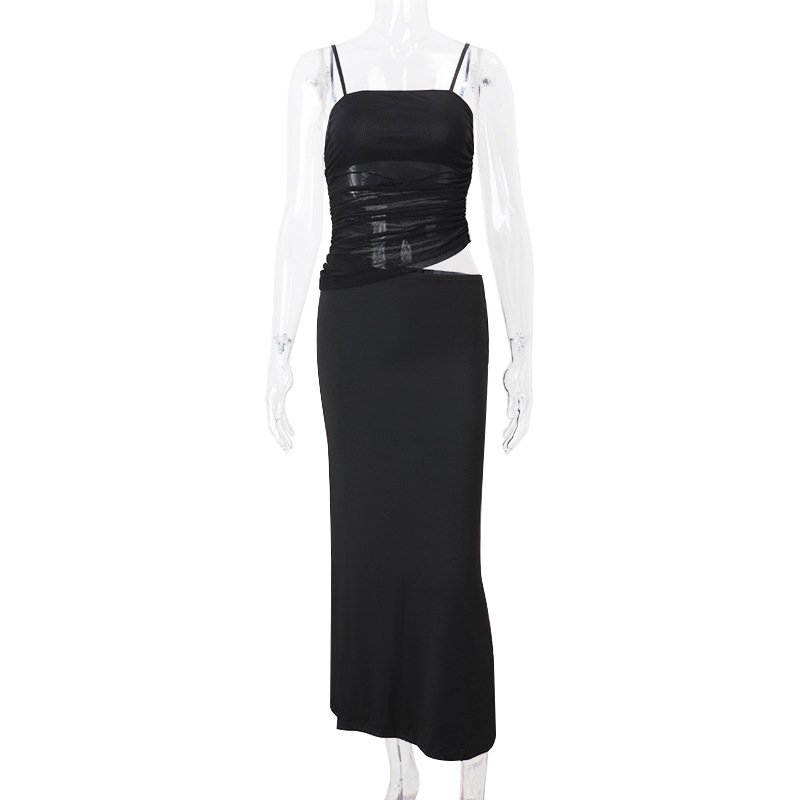 Shoulder knotted strap design is unique and delicate, and the large – area backless cut fully shows the charming shoulder and back lines. The ruched waist craftsmanship of the dress outlines the slender waist, and the long skirt is drapey and slim – fitting, highlighting the elegant posture. The fabric is skin – friendly and elastic, making it an eye – catching choice for important occasions such as dinners and red carpets, easily creating a sexy and grand fashion look.
