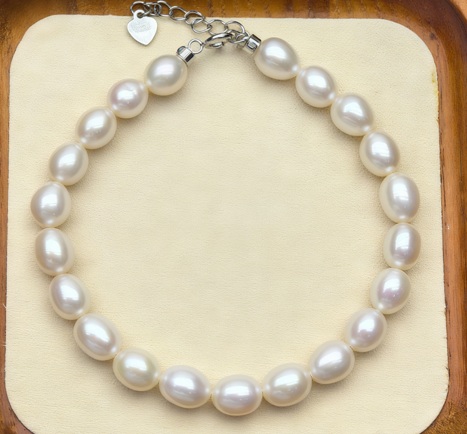 Each freshwater pearl boasts unique luster and shape, celebrating the beauty of organic, one-of-a-kind bracelet design.